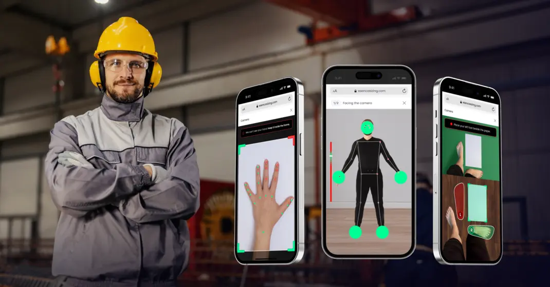 Im Zentrum der Lösung von Esenca Sizing steht eine digitale Vermessungstechnologie, die mithilfe einer Smartphone-Kamera präzise Körper-, Hand- und Fußmaße ermittelt. Ohne spezielle Hardware und ohne aufwendige Messverfahren entstehen so exakte Größenprofile, die direkt in die Produktentwicklung und Größenzuordnung einfließen.