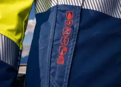 Stehkragen, verdeckter Reißverschluss und Druckknopfleiste, 2 mit Patte verschließbare Brusttaschen, 2 mit Blende verschließbare Seitentaschen, 1 innenliegende Handytasche mit Patte, verschließbare Ärmelbündchen, Front und Ärmel zweilagig Stehkragen ATPV = 14,6 cal/cm² & 31,9 cal/cm extrem leicht (320g/m² + 160g/m²) Ärmelbund mit Verschluss EN 1149-5 Elektrostatisch ableitfähige Schutzkleidung, EN 13034-6 Chemikalienschutz Typ 6, EN 61482-2 Störlichtbogenschutz Kl. 1, Kl. 2 im zweilagigen Bereich, EN ISO 11611 Schweißerschutz Kl. 1 - A1, EN ISO 11612 Hitze- und Flammschutz A1, B1, C1, E1, F1,