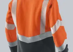 45% Modacryl, 35% Baumwolle, 18% Polyamid, 2% Antistatikfaser. Inhärenter Flammenschutz. Verstärkung aus 79% Baumwolle FR, 20% Polyamid, 1% antistatische Faser. 300 g/m².