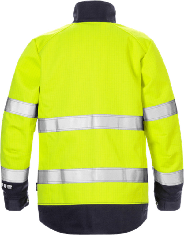 Vordere Knopfleiste mit Reißverschluss bis zum Kragen und verdecktem Druckknopfverschluss / 2 geräumige Taschen mit Patte und verdecktem Druckknopfverschluss, 1 mit D-Ring innen / 2 Vordertaschen mit verdecktem Druckknopfverschluss / Innentasche mit Knopfverschluss und Handytasche mit Patte und Klettverschluss / Verstellbare Taille mit Knopf / Verstellbare Ärmelbündchen mit Druckknopfverschluss / Verlängerter Rücken / Geprüft nach EN 61482-1-2 APC 1, EN 61482-1-1 ELIM: 8 cal/cm² (siehe Lichtbogentabelle für zertifizierte Bekleidungskombinationen für EN 61482-1-2 Klasse 2 und offenen Lichtbogen nach EN 61482-1-1), EN ISO 11612 A1 B1 C1 E2 F1, EN ISO 11611 A1 Klasse 1 (siehe Flammen- und Schweisstabelle für zertifizierte Bekleidungskombinationen), EN 1149-5 und EN ISO 20471 Klasse 2 Grössen XS-M und Klasse 3 Grössen L-3XL / Geprüft nach 50 Wäschen / Industriewäsche geeignet gemäß ISO 15797 / OEKO-TEX® zertifiziert. Größen: XS - 3XL Normen: OEKO-TEX®|PRO Industrial laundry|U5 Klassifikationen: IEC 61482-2 Störlichtbogen, mit ELIM-Wert.|EN ISO 11612 Schutz vor Hitze und Flammen|EN ISO 11611 Schweißer-Schutz|EN 1149 Schutz vor elektrostatischer Entladung|EN 20471 Warnschutz Eigenschaften: Multinorm|Hoher Baumwoll-Komfort|Für Schweißarbeiten zugelassen description (en): Front placket opening with zip to top of collar and concealed snap fastening / 2 bellowed chest pockets with flap and concealed snap fastening, 1 with inside D-ring / 2 front pockets with concealed snap fastening / Inside pocket with button fastening and mobile phone pocket with flap and velcro fastening / Adjustable waist with button / Adjustable cuffs with snap fastening / Extended back / Approved according to EN 61482-1-2 APC 1, EN 61482-1-1 ELIM: 8 cal/cm² (see Electric arc table for certified garment combinations for EN 61482-1-2 class 2 and open arc according to EN 61482-1-1), EN ISO 11612 A1 B1 C1 E2 F1, EN ISO 11611 A1 class 1 (see Flame and welding table for certified garment combinations), EN 1149-5 and EN ISO 20471 class 2 sizes XS-M and class 3 sizes L-3XL / Approved after 50 washes / Leasing laundry-tested according to ISO 15797 / OEKO-TEX® certified.