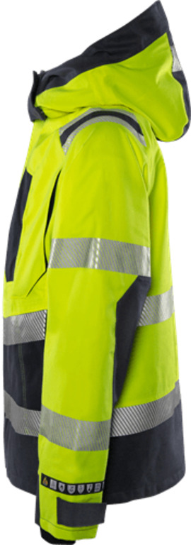 Wasserdicht, winddicht und atmungsaktiv / Schmutz-, öl- und wasserabweisend / Abnehmbare und verstellbare Kapuze / Fronttaschenöffnung mit Zwei-Wege-Reißverschluss bis zum Kragen und verdecktem Klettverschluss / 2 Brusttaschen mit verdecktem Reißverschluss, eine mit D-Ring innen / Kartentasche mit Reißverschluss und Handytasche innen, von außen zugänglich / 2 Innentaschen, eine mit Reißverschluss / 2 fleecegefütterte Vordertaschen mit Reißverschluss / Verstellbare Ärmelenden mit elastischem Innenbündchen / Verlängerter Rücken / Verstellbarer Saum mit Kordelzug / Reißverschluss im Futter für Transfer und Stickerei / Wassersäule 10.000 mm / Atmungsaktivität RET 14,44 / Geprüft und zugelassen nach EN 61482-1-2 APC 2, EN 61482-1-1 ELIM: 27 cal/cm², EN ISO 11612 A1 A2 B1 C1 F1, EN ISO 11611 A1 A2 Klasse 1, EN 1149-5, EN 13034 Typ PB [6], EN ISO 20471 Klasse 2 in Größen XS-S und Klasse 3 in M-4XL und EN 343 Klasse 3/4 / Zugelassen nach 25 Wäschen / OEKO-TEX® zertifiziert. Größen: XS - 4XL Normen: OEKO-TEX® PPE|U6 Klassifikationen: IEC 61482-2 Störlichtbogen, mit ELIM-Wert.|EN ISO 11612 Schutz vor Hitze und Flammen|EN ISO 11611 Schweißer-Schutz|EN 1149 Schutz vor elektrostatischer Entladung|EN 13034 Schutz (begrentzt) vor flüssigen Chemikalien|EN 20471 Warnschutz|EN 343 Regenschutz Eigenschaften: Wasserdicht, winddicht und atmungsaktiv|Multinorm inhärenter Schutz|Extra hoher Störlichtichtbogenschutz description (en): Waterproof, windproof and breathable / Taped seams / Dirt, oil and water repellent / Detachable and adjustable hood / Front placket opening with two-way zip to top of collar and concealed velcro fastening / 2 chest pockets with concealed zip, one with inside D-ring / Map pocket with zip and inside mobile phone pocket, accessible from outside / 2 inside pockets, one with zip / 2 fleece-lined front pockets with zip / Adjustable sleeve ends with elastic inner cuff / Extended back / Adjustable hem with drawstring / Zip in lining for transfer and embroidery / Waterpillar 10.000 mm / Breathability RET 14,44 / Approved according to EN 61482-1-2 APC 2, EN 61482-1-1 ELIM: 27 cal/cm², EN ISO 11612 A1 A2 B1 C1 F1, EN ISO 11611 A1 A2 class 1, EN 1149-5, EN 13034 Type PB [6], EN ISO 20471 class 2 in sizes XS-S and class 3 in sizes M-4XL and EN 343 class 3/4 / Certified after 25 washes / OEKO-TEX® certified.