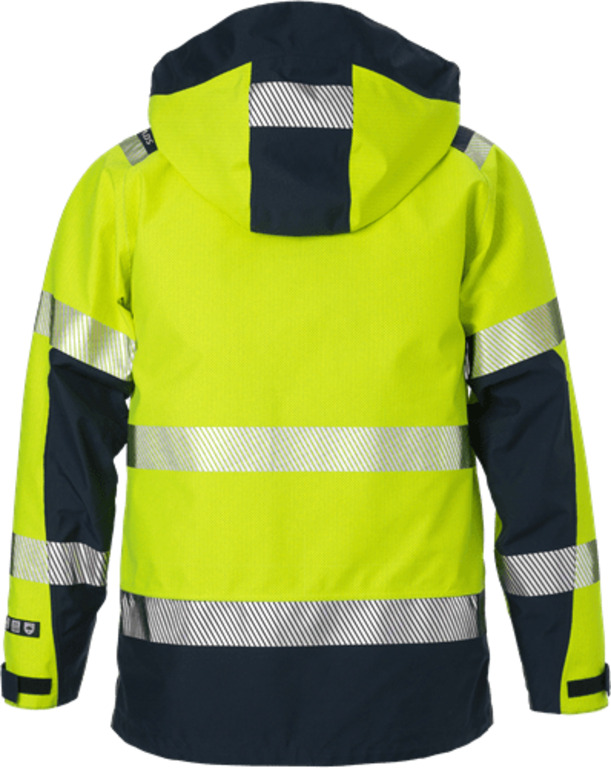 2-lagiges GORE-TEX PYRAD® Material, dauerhaft wind- und wasserdicht, atmungsaktiv / Schmutz- und ölabweisend / Vollständig gefüttert / Über die Schultern führende Reflexstreifen / Abnehmbare, verstellbare gefütterte Kapuze / Verdeckter Reißverschluss mit Klettverschluss bis zum oberen Kragenrand / 2 Brusttaschen mit Patte, Klettverschluss und Reißverschluss - eine mit D-Ring / 2 Vordertaschen mit Patte, Klettverschluss und Reißverschluss / 2 Innentaschen - eine mit Knopf, die andere mit Reißverschluss / Verstellbare Armabschlüsse / Elastische Ärmelinnenbündchen / Verstellbare Unterkante mit Kordel / Reißverschluss im Futter ermöglicht Stickereien und Wärmetransfers / Metallfreies Kleidungsstück / Wassersäule > 10.000 mm / ePTFE Membrane / Atmungsaktivität RET 8,33 / Geprüft nach EN 61482-1-2 APC 2, EN 61482-1-1 ELIM: 40 cal/cm² (siehe Lichtbogentabelle für zertifizierte Bekleidungskombinationen für EN 61482-1-2 Klasse 2 und offenen Lichtbogen nach EN 61482-1-1), EN ISO 11612 A1 A2 B2 C1 D3 E3 F1, EN ISO 11611 A1 A2 Klasse 2, EN 1149-5, EN 13034 Typ PB [6], EN ISO 20471 Klasse 2 in den Größen XS-S und Klasse 3 in den Größen M-3XL und EN 343 Klasse 4/4 / Geprüft nach 30 Wäschen / OEKO-TEX® zertifiziert. Größen: XS - 4XL Normen: OEKO-TEX® PPE|U6 Klassifikationen: IEC 61482-2 Störlichtbogen, mit ELIM-Wert.|EN ISO 11612 Schutz vor Hitze und Flammen|EN ISO 11611 Schweißer-Schutz|EN 1149 Schutz vor elektrostatischer Entladung|EN 13034 Schutz (begrentzt) vor flüssigen Chemikalien|EN 20471 Warnschutz|EN 343 Regenschutz Eigenschaften: Wasserdicht, winddicht und atmungsaktiv|Multinorm inhärenter Schutz|Extra hoher Störlichtichtbogenschutz description (en): 2-layer GORE-TEX PYRAD® material, wind and waterproof but breathable / Dirt and oil repellent / Fully lined / Reflective detail on shoulders / Detachable lined hood with adjustable strap and drawstring / Storm flap with zip to top of collar and velcro fastening / 2 chest pockets with flap with velcro fastening and zip, 1 with D-ring / 2 front pockets with flap with velcro fastening and zip / 2 inside pockets, 1 with button and 1 with zip / Adjustable sleeve end / Elastic inner cuffs / Adjustable hem with drawstring / Zip in lining to make embroidery and transfer easier / Metal free garment / Waterpillar > 10.000 mm / ePTFE membrane / Breathability RET 8,33 / Approved according to EN 61482-1-2 APC 2, EN 61482-1-1 ELIM: 40 cal/cm² (see Electric arc table for certified garment combinations for EN 61482-1-2 class 2 and open arc according to EN 61482-1-1), EN ISO 11612 A1 A2 B2 C1 D3 E3 F1, EN ISO 11611 A1 A2 class 2, EN 1149-5, EN 13034 type PB [6], EN ISO 20471 class 2 in sizes XS-S and class 3 in sizes M-3XL and EN 343 class 4/4 / Certified after 30 washes / OEKO-TEX® certified.