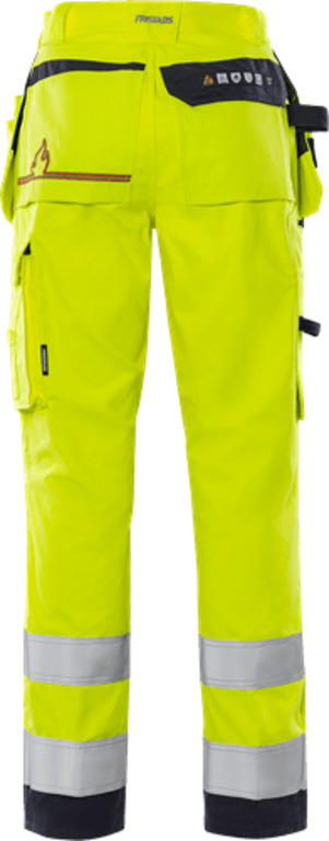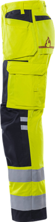 Schmutz-, öl- und wasserabweisend / 2 CORDURA®-verstärkte, einsteckbare, lose hängende Außentaschen - eine mit extra Tasche, die andere mit 3 Taschen und Werkzeugschlaufen / 2 Vordertaschen / D-Ring / 2 CORDURA®-verstärkte Gesäßtaschen - eine mit Patte / Beintasche mit Patte und verdeckten Druckknöpfen, Handytasche mit Patte, Klettverschluss und D-Ring / Hammerschlaufe / CORDURA®-verstärkte Zollstocktasche mit Werkzeugtasche sowie Knopf und Schlaufe für ein Arbeitsmesser / Verstärkte Oberschenkelpartie in Kontrastfarbe / Ergonomisch geformte Knie / CORDURA®-verstärkte Knietaschen, mit Öffnung innen, für höhenverstellbare Kniepolster / CORDURA®-verstärkte Beinabschlüsse / Metallfreies Kleidungsstück / Zugelassen nach EN 14404 zusammen mit Knieschonern 124292, EN 61482-1-2 APC 1, EN 61482-1-1 ELIM: 9 cal/cm² (siehe Lichtbogentabelle für zertifizierte Kleidungskombinationen für EN 61482-1-2 Klasse 2 und offenen Lichtbogen nach EN 61482-1-1), EN ISO 11612 A1 A2 B1 C1 F1, EN 1149-5 und EN ISO 20471 Klasse 2 / Gewebe zugelassen nach EN 13034 / Zugelassen nach 50 Wäschen / Industriewäsche geeignet gemäß ISO 15797 / OEKO-TEX® zertifiziert. Größen: C44 - C62 C146 - C156 D84 - D116 Normen: OEKO-TEX® PPE|PRO Industrial laundry|T4 Klassifikationen: IEC 61482-2 Störlichtbogen, mit ELIM-Wert.|EN ISO 11612 Schutz vor Hitze und Flammen|EN 1149 Schutz vor elektrostatischer Entladung|EN 20471 Warnschutz|EN 14404 Knieschutz Eigenschaften: Multinorm inhärenter Schutz|Langlebiger, komfortabel|Schmutz-, öl- und wasserabweisend description (en): Dirt, oil and water repellent / 2 tuckable, CORDURA® reinforced, loose-hanging front pockets, left pocket with extra pocket and right pocket with 3 pockets and tool loops / 2 front pockets / D-ring at waistband / 2 CORDURA®-reinforced back pockets one with flap / Leg pocket with flap and concealed snap fastening, phone pocket with flap and velcro fastening, D-ring / Hammer loop / CORDURA® reinforced folding rule pocket with tool pocket, button and loop for sheath knife / Reinforced thigh panels in contrast colour / Pre-shaped knees / CORDURA® reinforced knee pockets with inside opening / Height adjustment for knee pads in knee pocket / CORDURA® reinforced leg ends / Approved according to EN 14404 together with kneepads 124292, EN 61482-1-2 APC 1, EN 61482-1-1 ELIM: 9 cal/cm² (see Electric arc table for certified garment combinations for EN 61482-1-2 class 2 and open arc according to EN 61482-1-1), EN ISO 11612 A1 A2 B1 C1 F1, EN 1149-5 and EN ISO 20471 class 2 / Fabric is approved according to EN 13034 / Certified after 50 washes / Leasing laundry-tested according to ISO 15797 / OEKO-TEX® certified.