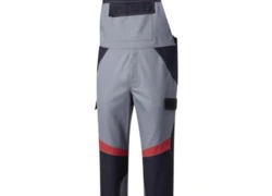 Stretchträger, Latztasche mit Patte und Druckknöpfen, Bund seitlich mit Dehneinsatz, 2 Seitentaschen, links Cargotasche mit aufgesetzter Smartphonetasche jeweils mit Patte und Druckknöpfen, rechts Zollstocktasche mit Patte und Druckknopf, Knietaschen, Gesäßtaschen mit Patte und Druckknöpfen, einfache Hosenbeinverlängerung durch skandinavischen Saum, Reflexstreifen um Beine, Reflexpaspel am Latz.