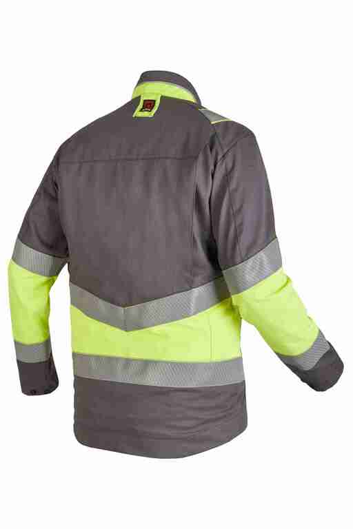 Normen: EN ISO 11612 A1 A2 B1 C1 E1 F1, EN ISO 11611 Kl. 1 A1 A2, EN 13034 Typ 6, EN 1149-3/-5, IEC 61482-2 APC 1, EN ISO 20471 Kl.1
