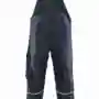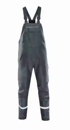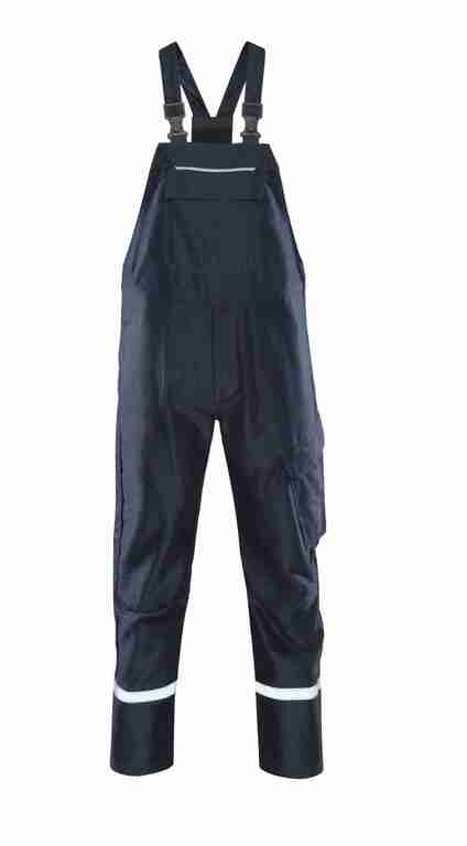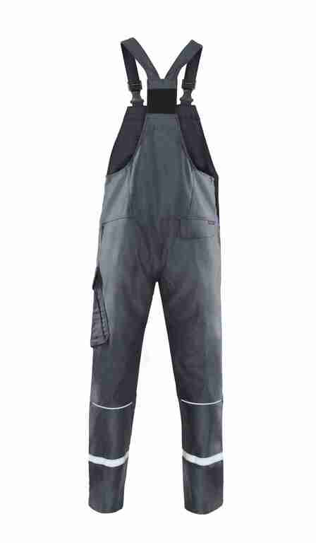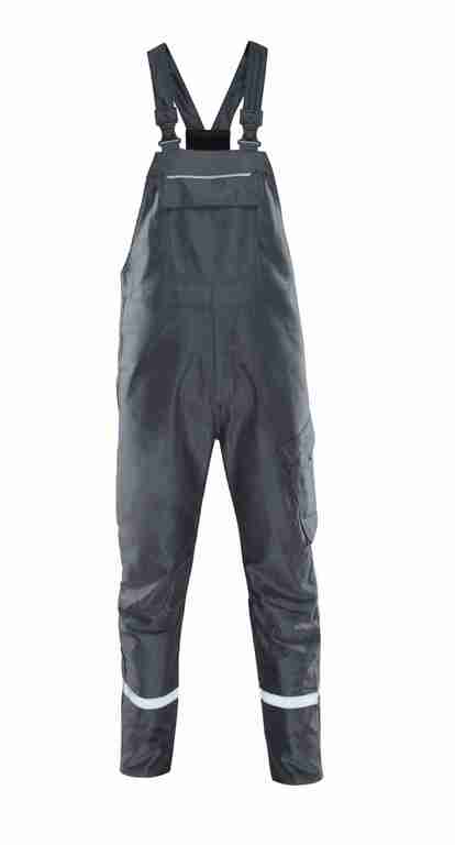 Träger mit Stretcheinsatz, Latztasche mit Patte und Druckknöpfen, Schlitz mit Reißverschluss, Bund weitenverstellbar durch seitliche Knopfleiste, 2 Seitentaschen, links Cargotasche mit Patte und Druckknöpfen, rechts 1 Gesäßtasche mit Patte und Druckknöpfen, Reflexpaspel an Latz und hinteren Hosenbeinen, Reflexstreifen um Hosenbeine.
