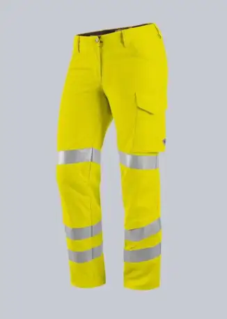 Dehnbund für optimalen Sitz, ergonomischer Schnitt, 2 Seitentaschen, 2 Gesäßtaschen, 1 geräumige Schenkeltasche, freihängende doppelte Zollstocktasche, je 2 umlaufende Reflexstreifen auf dem unteren Bein, je 1 umlaufender Reflexstreifen auf dem oberen Bein, mit Reflexstreifen für 360° Sichtbarkeit, Kniepolstertaschen (Kniepolster 1839 000 53 bitte separat bestellen) mit Kniepolstertaschen freihängende Zollstocktasche ergonomischer Schnitt modern fit EN ISO 20471 Warnschutz Klasse 2, EN 14404 Knieschutz in Verbindung mit BP® Kniepolster 1839-000-53,