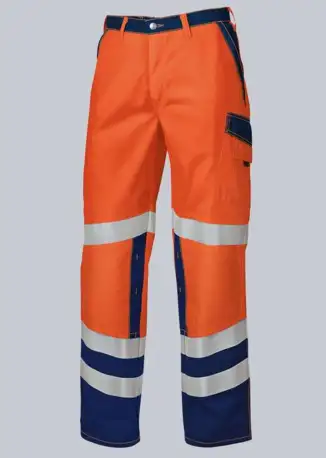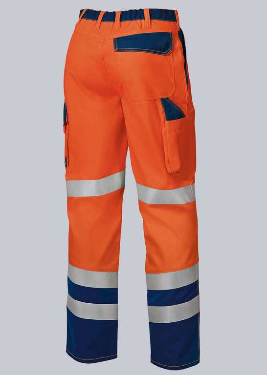 Rückwärtiger Dehnbund für optimalen Sitz, 2 Seitentaschen, Schenkeltasche mit aufgesetzter Smartphone- und Stifttasche, Schenkel- und Smartphonetasche mit Patte verschließbar, freihängende doppelte Zollstocktasche, 1 mit Patte verschließbare Gesäßtasche, je 2 umlaufende Reflexstreifen auf dem unteren Bein, je 1 umlaufender Reflexstreifen auf dem oberen Bein, Knieeinschubtaschen für Kniepolster 1839 000 53 (bitte separat bestellen) integrierter UV Schutz nach Standard 801 hoher Tragekomfort durch innenliegende Baumwolle schmutzabweisend durch DuraClean Ausrüstung normale Passform EN ISO 20471 Warnschutz Klasse 2, EN 14404 Knieschutz in Verbindung mit BP® Kniepolster 1839-000-53,