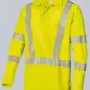 Polokragen mit verdeckter Druckknopfleiste, 1/1 Arm, 1 umlaufender Reflexstreifen oberhalb des Saumes aufgepatcht, je 2 umlaufende vertikale Reflexstreifen vorn und hinten aufgepatcht, je 2 Reflexstreifen auf dem Ärrmel, dehnbare Reflexstreifen integrierter UV Schutz nach Standard 801 innen baumwollweich dehnbare Reflexstreifen für maximale Bewegungsfreiheit normale Passform EN ISO 20471 Warnschutz Klasse 2, ab Gr. M Klasse 3, DIN EN 13758-2 Schutz gegen ultraviolette Sonnenstrahlung, 40+, DIN EN 13758-2 protection against solar UV, 40+