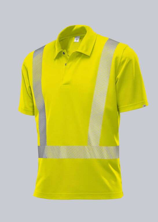 Polokragen mit verdeckter Druckknopfleiste, 1/2 Arm, 1 umlaufender Reflexstreifen oberhalb des Saumes aufgepatcht, je 2 umlaufende vertikale Reflexstreifen vorn und hinten aufgepatcht, dehnbare Reflexstreifen integrierter UV Schutz nach Standard 801 dehnbare Reflexstreifen für maximale Bewegungsfreiheit weitere Produktinformationen unter https://www.youtube.com/watch?v=1RCdZ3ldhEQ normale Passform EN ISO 20471 Warnschutz Klasse 2, DIN EN 13758-2 Schutz gegen ultraviolette Sonnenstrahlung, 40+, DIN EN 13758-2 protection against solar UV, 40+
