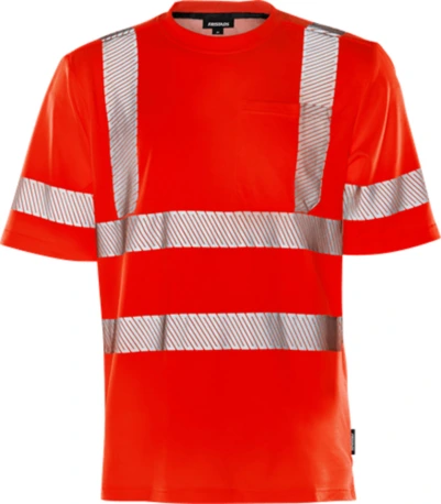Rundhalsausschnitt / Brusttasche / Dehnbare Reflexstreifen / Baumwoll-Innenseite / Geprüft und zugelassen gemäß EN 13758-2 UPF 40+ UV-Schutzeigenschaften und EN ISO 20471 Klasse 2 - Größen XS-L und Klasse 3 - Größen XL - 3XL / Zugelassen nach 25 Wäschen / OEKO-TEX® zertifiziert. Größen: XS - 4XL Normen: OEKO-TEX® Recycled|U5 Klassifikationen: EN 13758 UV-Schutz|EN 20471 Warnschutz Eigenschaften: Baumwolle auf der Innenseite|Transportiert Feuchtigkeit|UV-Schutz description (en): Rib-knit neck / Chest pocket / Striped reflective transfer / Cotton inside / Approved according to EN 13758-2 UPF 40+ Solar UV Protective Properties and EN ISO 20471 class 2 in sizes XS-L and class 3 in sizes XL-3XL / Certified after 25 washes / OEKO-TEX® certified.