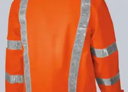 Fluoreszierendes Material: 80% Polyester, 20% Baumwolle. Übriges Material: 65% Polyester, 35% Baumwolle. Verstärkungen: 100% Polyamid. 300 g/m².