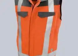 Bequeme Warnschutz-Latzhose aus schmutz-, öl- und wasserabweisendem Material, mit Baumwolle auf der Innenseite. CORDURA®-Verstärkungen und schmutzunempfindliches dunkles Material an besonders beanspruchten Stellen. Geeignet für Industriewäsche.