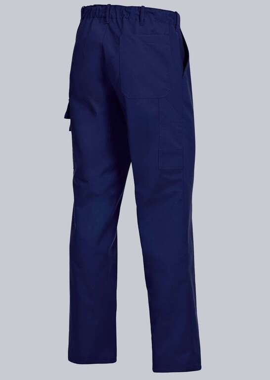 Gummizug im Rücken, Bundfalten, 2 Seitentaschen, Schlitzreißverschluss, Zollstocktasche, 1 mit Patte verschließbare Schenkeltasche mit aufgesetzter Handytasche, 1 verschließbare Gesäßtasche, reflektierende Paspeln schonend zu Oberflächen durch verdeckte Metallteile bequemer Bund mit Gummizug funktionale Taschen, seitlicher Reflexstreifen normale Passform