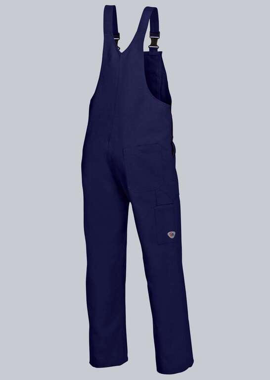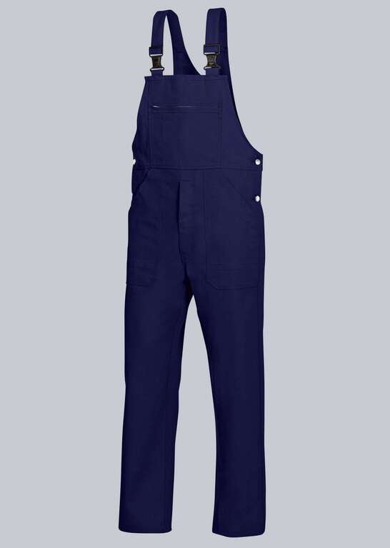 Stoffträger mit Gummieinsatz, Kunststoff-Steckschnallen, doppelte Latztasche, davon 1 mit verdecktem Reißverschluss, 1 Stifttasche, 2 Seitentaschen, 1 verschließbare Gesäßtasche, doppelte Zollstocktasche, Schlitzreißverschluss, hochgezogener Rücken, verstellbare Bundweite hochgezogener Rücken doppelte Latztasche verstellbare Bundweite, Stoffträger mit Gummieinsatz normale Passform