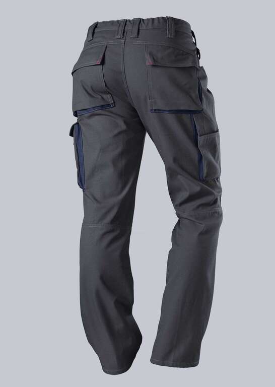 Doppelter Bundknopf und rückwärtiger Dehnbund für optimalen Sitz, ergonomischer Schnitt, D-Ring, 2 Seitentaschen, 2 mit Patte und Drucker verschließbare Gesäßtaschen, 1 geräumige Schenkeltasche mit aufgesetzter Smartphonetasche, doppelte Zollstocktasche, vorgeformtes Bein mit Bewegungseinsatz im Kniebereich
