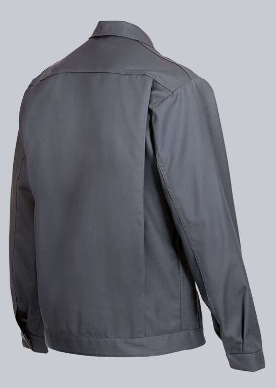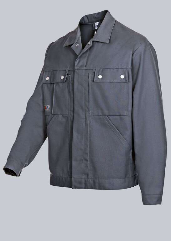 Verdeckte Druckknopfleiste, 2 Brusttaschen mit Patte und Druckknopfverschluss, davon 1 mit integrierter Handy-Tasche und 1 mit integrierter Stifttasche, 2 Seitentaschen, 1 verschließbare Innentasche, Ärmelbundweite durch Druckknöpfe verstellbar, Bewegungsfalten im Rücken, Rückenpasse