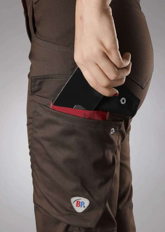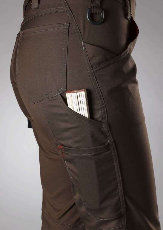 Schlanke Silhouette, Damenpassform, seitlicher Dehnbund für optimalen Sitz, ergonomischer Schnitt, D-Ring zum Befestigen von Accessoires, 2 Seitentaschen mit Stretcheinsatz für einen leichteren Eingriff, 2 Gesäßtaschen, Reflexelemente am Bein, 1 geräumige Schenkeltasche mit integrierter Smartphonetasche, freihängende doppelte Zollstocktasche Dehnbund im Rücken ergonomischer Schnitt Reflexelemente schmale Passform