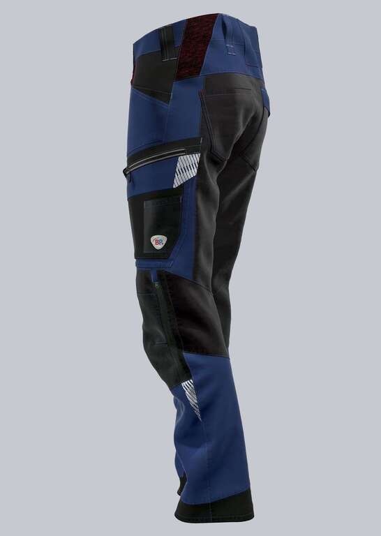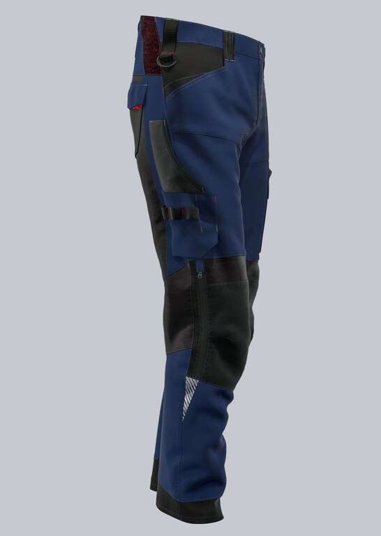 Stretcheinsätze im Gesäß-, Schritt- und Kniebereich, erhöhter Dehnbund im Rücken mit Strickeinsätzen für optimalen Sitz, 2 Seitentaschen, 2 Gesäßtaschen, davon 1 Tasche mit Patte verschließbar, 1 geräumige Schenkeltasche mit integrierter Reißverschlusstasche und aufgesetzter Smartphonetasche, freihängende Zollstocktasche mit Stifttaschen, D-Ring zum Befestigen von Accessoires, ergonomischer Schnitt, Reflexelemente am Bein und an der Schenkeltasche, Kniepolstertaschen aus Cordura® mit Reißverschluss und Belüftungsöffnung (BP® Kniepolster 1839-000-53 bitte separat bestellen)
