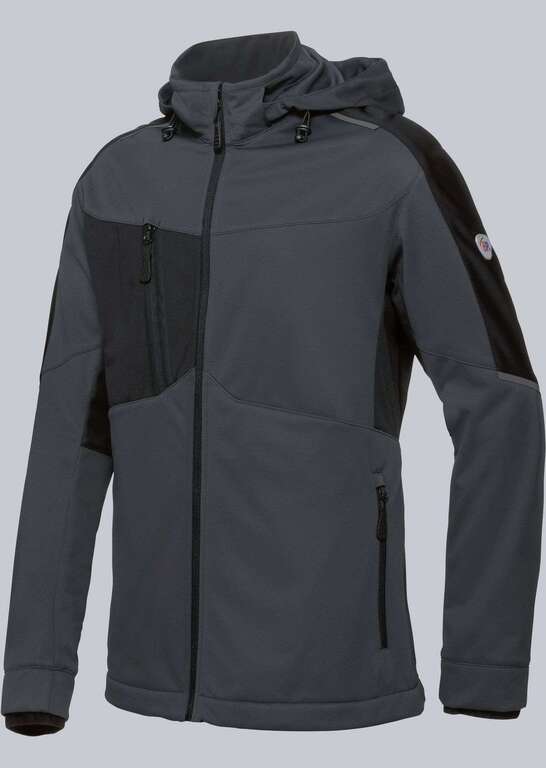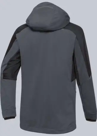 Stehkragen, Frontreißverschluss mit Fleece-Kinnschutz, 1 Brusttasche und 2 Seitentaschen mit Reißverschluss, Ärmelabschluss mit Windschutz, Armliftsystem für mehr Bewegungsfreiheit, innenliegende Saumweitenverstellung, abzippbare und weitenregulierbare Kapuze, Reflexelemente abnehmbare Kapuze Windschutz am Ärmel dunkle Reflexelemente schmale Passform