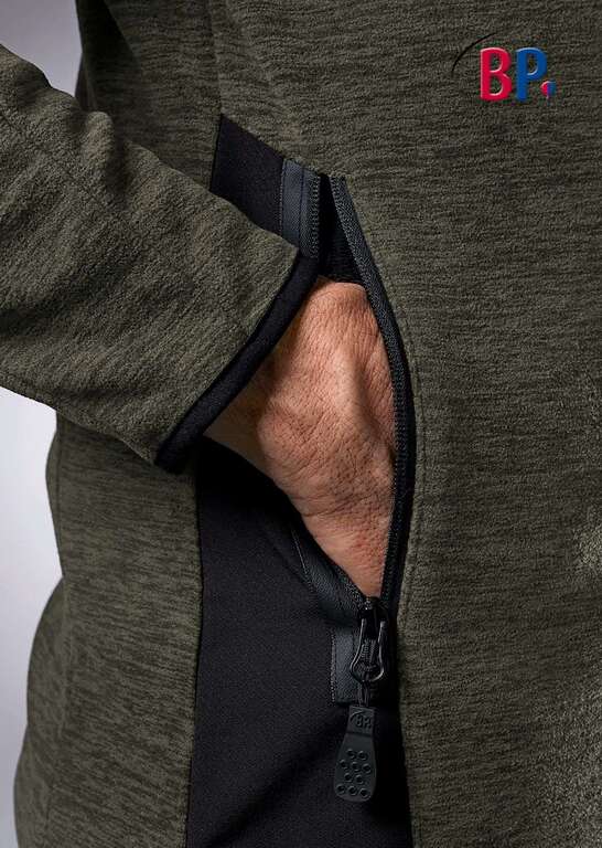 Stehkragen, Reißverschluss, 2 Seitentaschen mit Reißverschluss, strapazierfähige Stretch-Einsätze, ergonomischer Schnitt wärmend und atmungsaktiv weiches Fleece in space-dyed Optik 2 Seitentaschen mit Reißverschluss schmale Passform