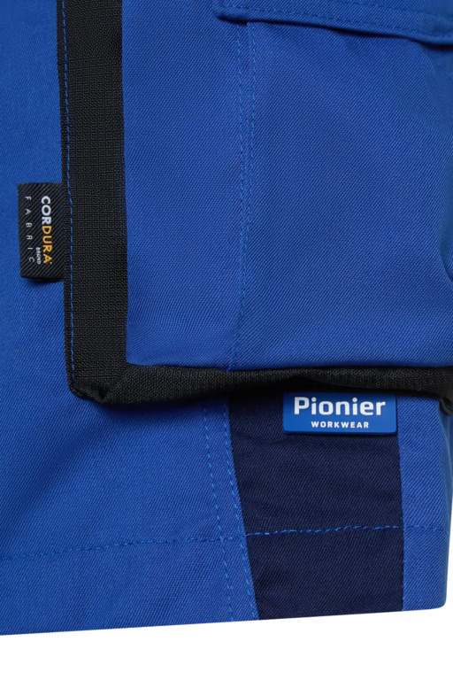 Erhöhter Rückenbund, verdeckter Patentknopf, sieben Gürtelschlaufen, Stretcheinsatz im Schritt. Eine linke Cargo-Beintasche mit CORDURA®-Verstärkung und inkl. Stifttasche und aufgesetzter Smartphone-Tasche, eine linke Gesäßtasche mit Patte und Druckknopf, eine rechte Gesäßtasche mit Blasebalg, CORDURA®-Verstärkung und Patte mit Druckknopf, rechte Zollstocktasche mit zweiter aufgesetzter Tasche. Leasingtaugliche Verarbeitung. Bermuda dreifarbig erhältlich.