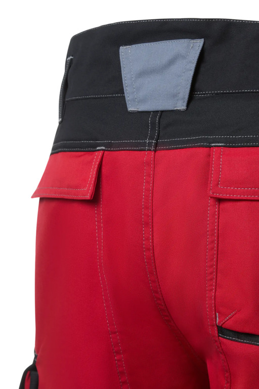 Erhöhter Rückenbund, verdeckter Patentknopf, sieben Gürtelschlaufen, Stretcheinsatz im Schritt. Eine linke Cargo-Beintasche mit CORDURA®-Verstärkung und inkl. Stifttasche und aufgesetzter Smartphone-Tasche, eine linke Gesäßtasche mit Patte und Druckknopf, eine rechte Gesäßtasche mit Blasebalg, CORDURA®-Verstärkung und Patte mit Druckknopf, rechte Zollstocktasche mit zweiter aufgesetzter Tasche. Leasingtaugliche Verarbeitung. Bermuda dreifarbig erhältlich.