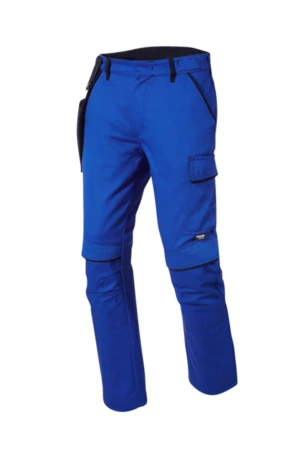 Bundhose mit Knietaschen, zwei eingesetzte Seitentaschen, Zollstocktasche, zwei Gesäßtaschen, rechts mit Patte, eine Cargotasche, Schlitz mit Metallreißverschluss, Hosenbund mit innenliegendem Knopf verschließbar, Laschen für separate Flexi-Pocket, Kontrastelemente in Schwarz an den Gürtelschlaufen, Innenbund, Tascheneingriffen und den Patten