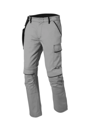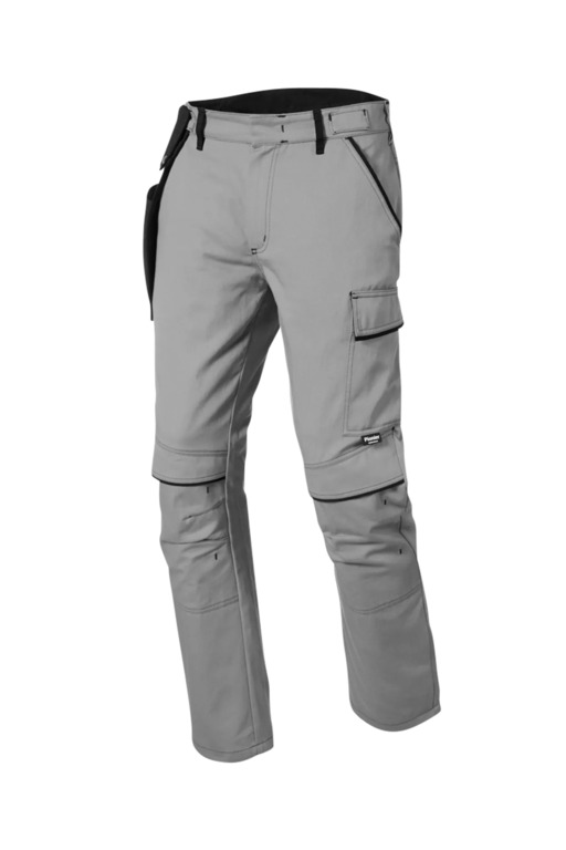 Bundhose mit Knietaschen, zwei eingesetzte Seitentaschen, Zollstocktasche, zwei Gesäßtaschen, rechts mit Patte, eine Cargotasche, Schlitz mit Metallreißverschluss, Hosenbund mit innenliegendem Knopf verschließbar, Laschen für separate Flexi-Pocket, Kontrastelemente in Schwarz an den Gürtelschlaufen, Innenbund, Tascheneingriffen und den Patten