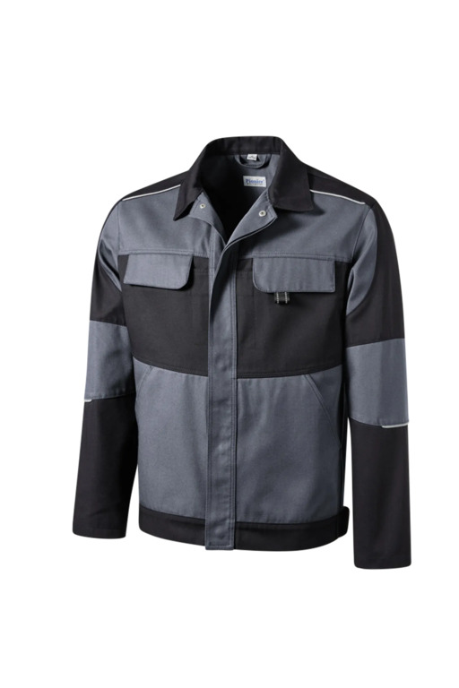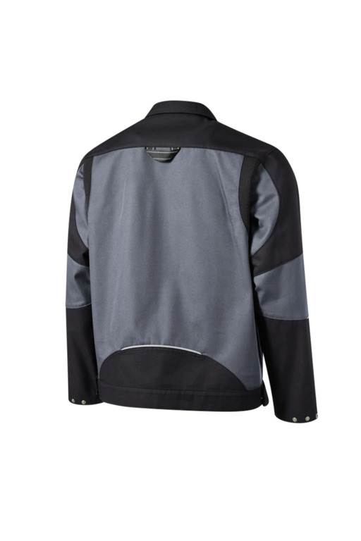 zweifarbige Bundjacke mit Reverskragen, Reflexpaspel, verdeckter Druckknopfverschluss, zwei eingesetzte Seitentaschen, eine aufgesetzte Brusttasche mit Patte und Stiftfach, verstellbare Bundweite durch Druckknopf, zweifach verstellbarer Ärmelsaum durch Druckknopf, Stretcheinsätze im Rücken, hohe Ärmel für mehr Bewegungsfreiheit, Collar, Aufhänger