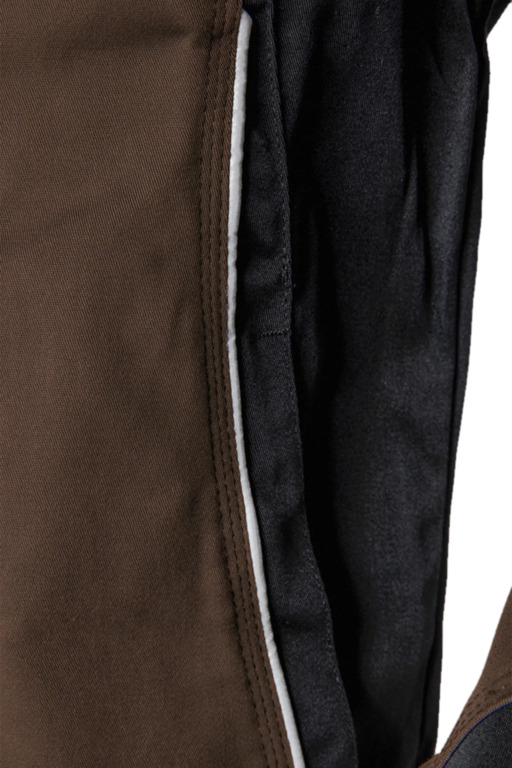 Leasingtaugliche zweifarbige Bundjacke, Stehkragen, verdeckter Reißverschluss, zwei eingesetzte Seitentaschen mit verdecktem Reißverschluss, Innentasche, eine innenliegende eingesetzte Brusttasche mit verdecktem Reißverschluss, eine aufgesetzte Blasebalg-Brusttasche mit Patte, Stifttasche, aufgesetzte Handytasche auf der rechten Brusttasche, extra langer Rücken, innenliegende Ärmelstrickbündchen, innenliegende Druckknöpfe zum Einknöpfen einer Innenweste, Bundweitenverstellung durch Druckknopflasche, Reflexpaspel vorne und an den Ellenbogen