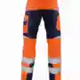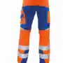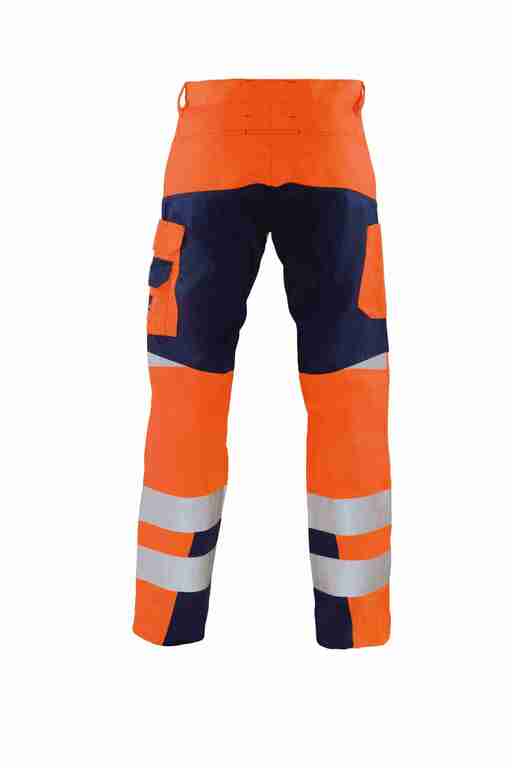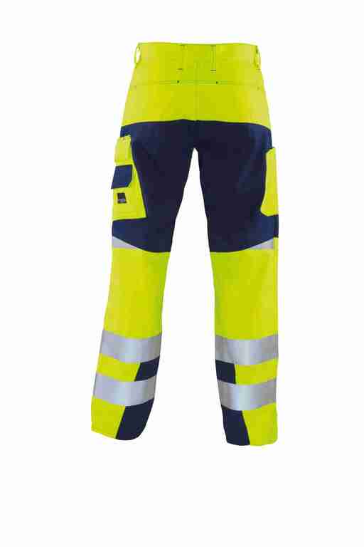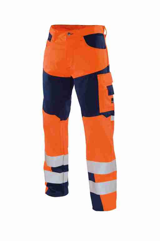 Bund mit Gürtelschlaufen und Knopf, Schlitz mit Reißverschluss, 2 Seitentaschen, Seitentasche rechts zusätzlich mit Billettasche, links Cargotasche mit Patte und Klett und integrierter Zollstocktasche, zusätzlich aufgesetzte Handytasche mit Patte und Klett sowie Stiftöffnung, rechts Zollstocktasche mit abgenähter Stifttasche, Knietaschen, 2 Gesäßtaschen, 70mm Reflexstreifen um Beine, Reflexapplikationen an Hinterhose. Eigenschaften:strapazierfähig, geringes Gewicht, angenehmer weicher Griff, wasser-, öl- und schmutzabweisend, hautfreundlich (Öko-Tex Standard 100 Produktklasse II), guter Tragekomfort. Anwendungsgebiete:bei Verkehrsbetrieben.