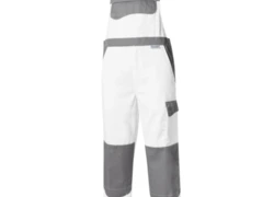 Träger mit Stretcheinsatz, Latztasche mit Patte und Druckknöpfen sowie abgenähter Stifttasche, Schlitz mit Reißverschluss, Bund weitenverstellbar durch seitliche Knopfleiste, 2 Seitentaschen, links Cargotasche mit Patte und Druckknöpfen, rechts Zollstocktasche mit Patte und Druckknopf, Knietaschen, rechts Gesäßtasche mit Patte und Druckknöpfen, Applikationen an den Beinen, Proban®.