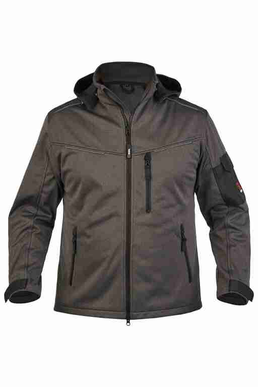 Material: Softshell, 100% Polyester (recycelt) mit PU-Membran, 320 g/m²