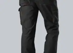 Luxe-Qualität / Strapazierfähig / 2 Vordertaschen / D-Ring / 2 Gesäßtaschen mit Patte, Klettverschluss und Druckknopf / 2 große Beintaschen mit Patte, Klettverschluss und Druckknopf - eine mit Handytache und Zollstocktasche, die andere mit Stifttaschen und Ausweishalter / OEKO-TEX® zertifiziert.
